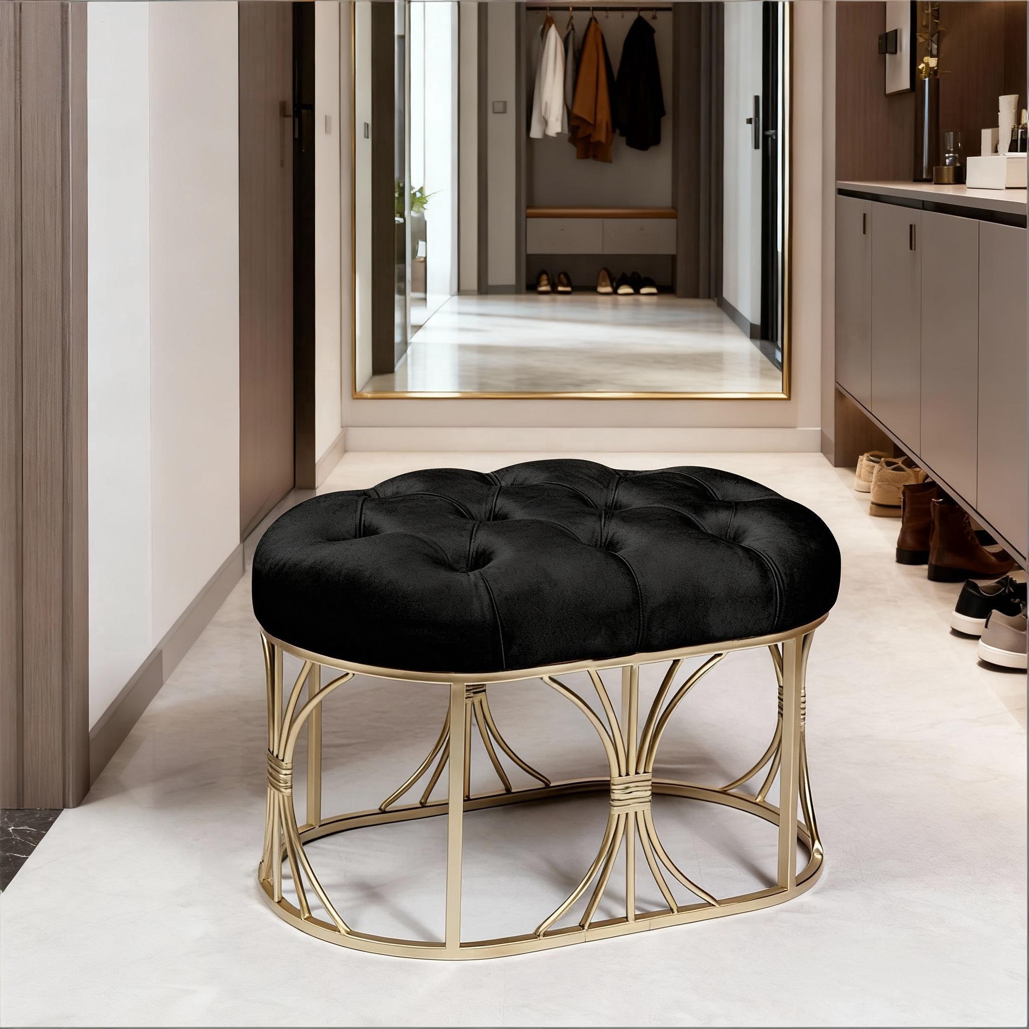 Oval shaped Tufted velvet stool with Gold metal base-Classic Black